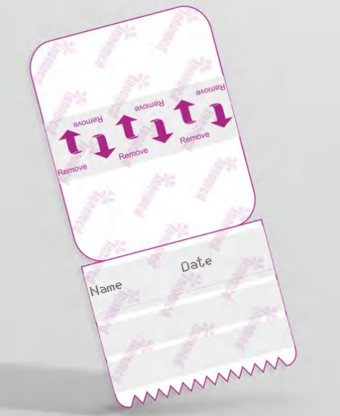 Specimen ad securitatem inponenda in sensitive areas, inter vultus cutis et oris mucosae.