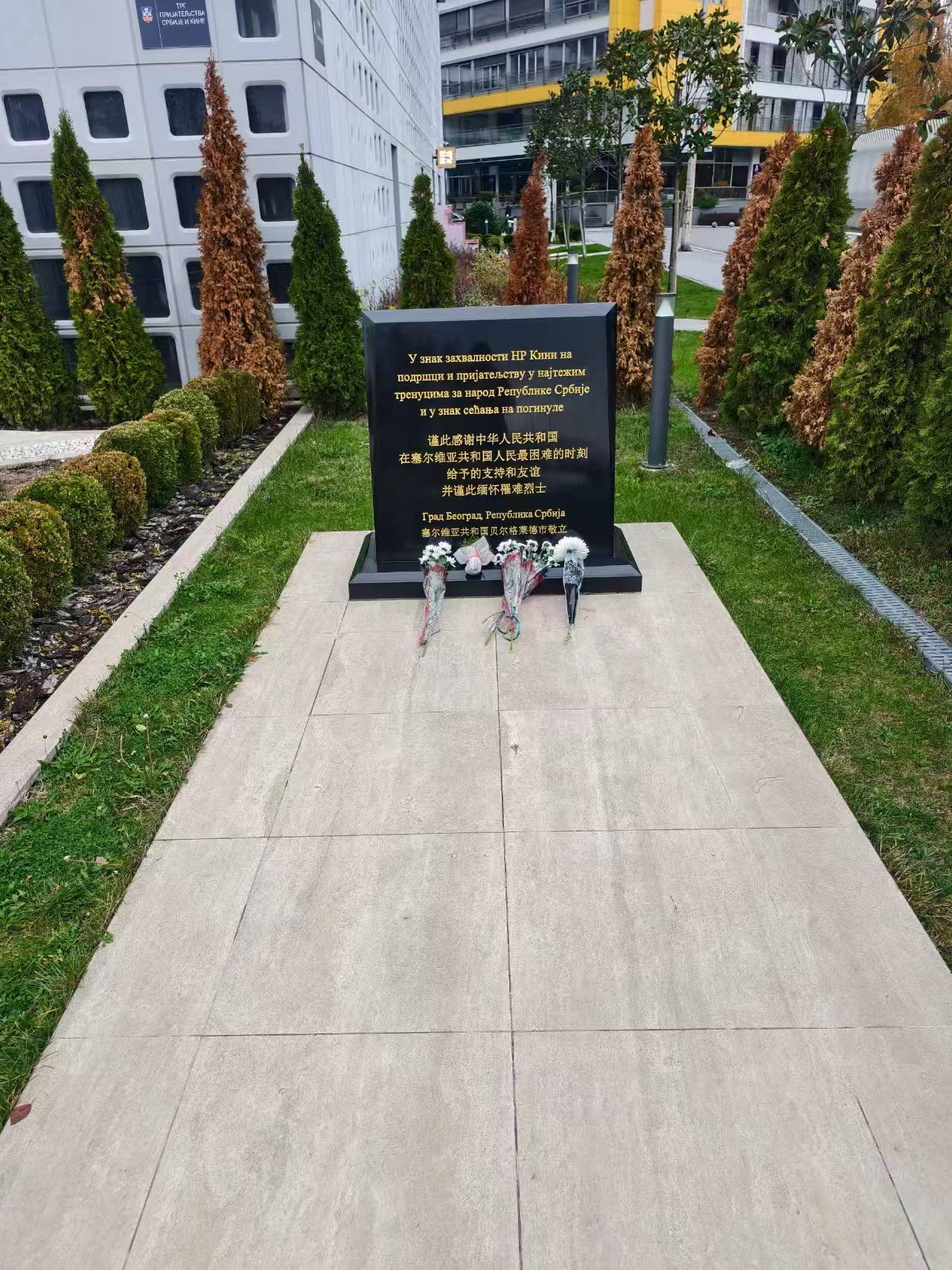 In situ, sodales stabant solemniter ante monumentum inscriptum "Honor Martyres, Pacem Diligite", praeteritum considerans. Monumentum nigrum, insculptum textui Sinensi et Serbiae, quod communi vinculo inter Sinas et Serbiam in temporibus discriminibus insculptum erat, novis floribus et vexillis nationalibus Sinensium - signa permanentis observantiae per tempus cingebatur. "Hic cum pacis valorem etiam magis tangibilem facit," manipulus princeps notandus est. "Pax hi martyres cum vita custoditi fundamentum est nostrae missionis tamquam medicinae doctorum ad vitam tuendam".