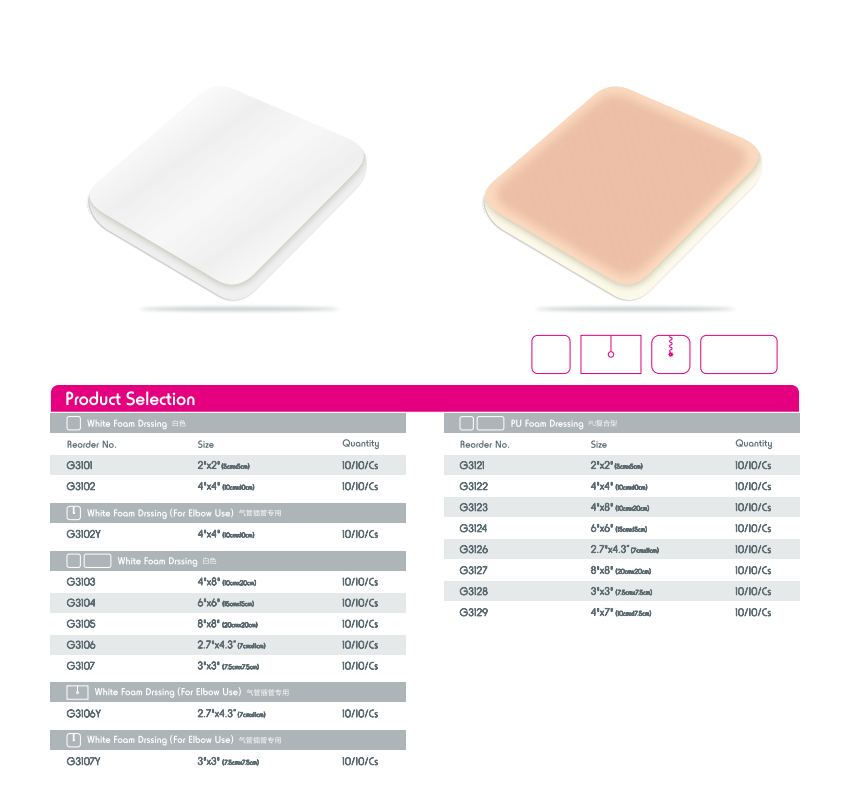 Spuma inponenda sunt mollia, addita vulneris cura producta ex bibula, materia raro. Eorum clavem vis est in moderando ad gravia vulneris INCILE moderanda, dum vulnus cubile servando apte humidum est ad sanandum accelerandum. Spuma mollis pulvinum et tutelam praebet, eorum superficies non-baculus patitur remotionem doloris liberorum.